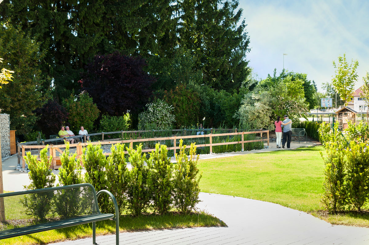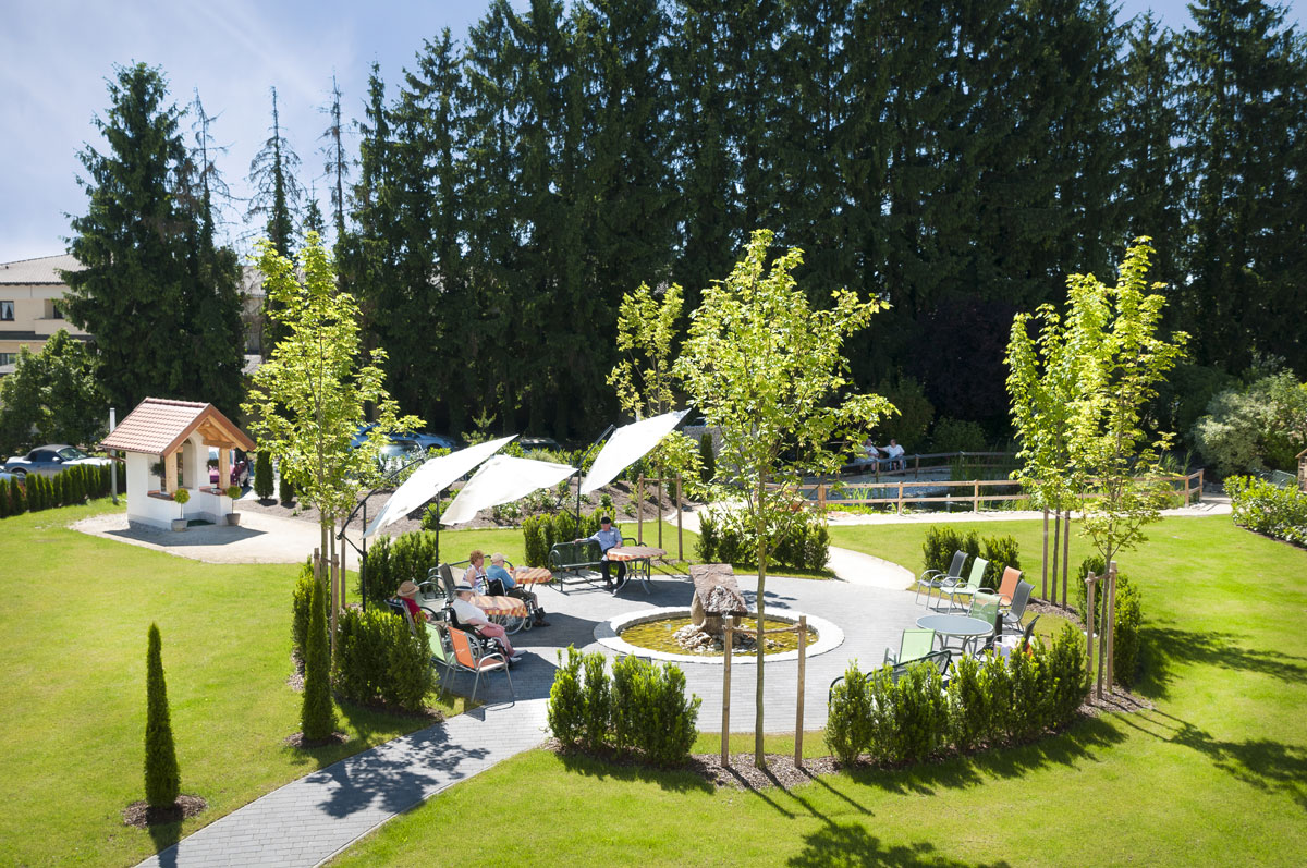 Das Gebäude ist sehr wohnlich, gemütlich und bietet ein schönes, neues Zuhause. Die zahlreichen Sonnenterrassen mit schönen schattigen Plätzen, sowie offene Aufenthaltsbereiche auf allen Etagen bieten viel Raum für Begegnungen unter den Bewohnern, oder mit Angehörigen und Freunden. Zudem ist unser plätschernder Springbrunnen in der Mitte unseres Gartens ein gerne besuchter Treffpunkt.