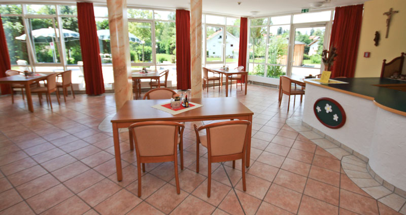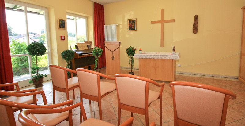 Das Haus verfügt neben einem Mehrzwecksaal über diverse Therapie- und Besprechungszimmer. Ein beliebter Aufenthaltsort für unsere Heimbewohner ist das Café im Erdgeschoss, das auch gerne von den älteren Bewohnern Isens genutzt wird. Auf jeder Etage wurden zudem Wintergärten integriert, die unseren Bewohnern bei gutem, wie bei schlechtem Wetter einen gemütlichen Platz zum Verweilen bieten. Für stille Momente verfügt unser Haus außerdem über eine eigene kleine Kapelle.