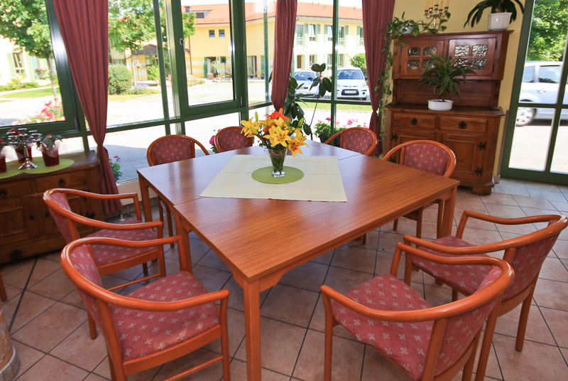 Für gemeinsame Aktivitäten der Hausbewohner stehen auf jeder Station gemütlich eingerichtete Wohnbereiche zur Verfügung. Zentral im Hauptgebäude erfreuen sich unser Café und unsere Sonnenterrasse als Treffpunkte größter Beliebtheit. Zudem stehen unseren Bewohnern hier ein Multifunktionssaal, verschiedenste Therapie- und Besprechungszimmer sowie ein kleiner hauseigener Andachtsraum jederzeit zur freien Benutzung offen.