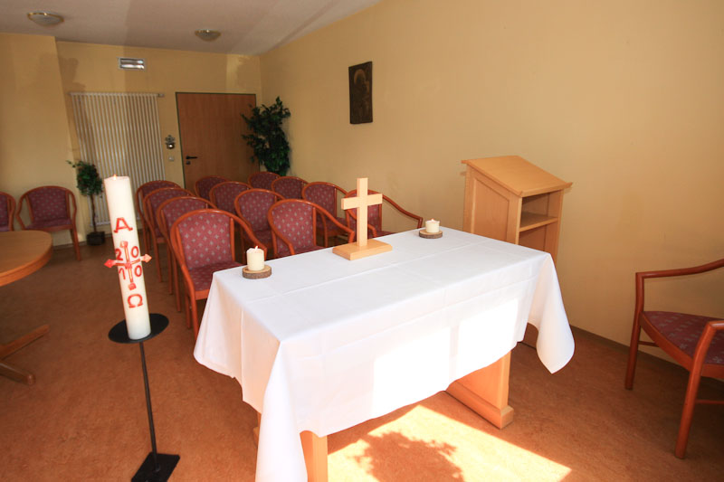 - Andachtsraum, Cafeteria, große Gartenanlage